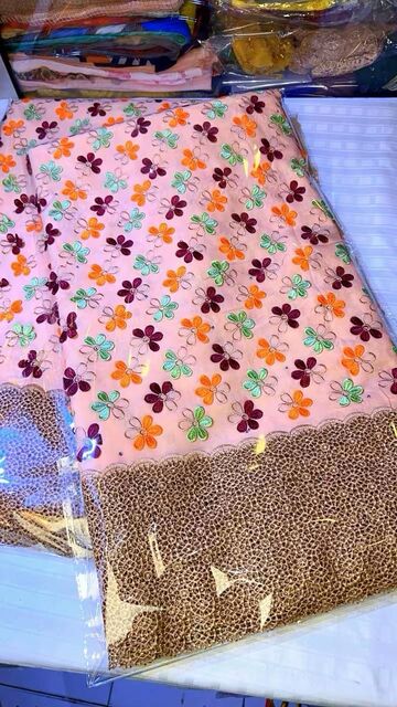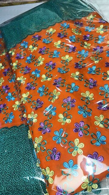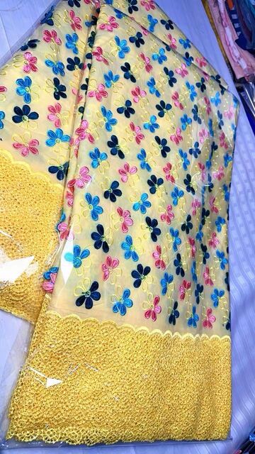 C’est un tissu qui a beaucoup de caractère grâce à sa bordure imposante. Vous comptez l’associer à un foulard de quelle couleur pour faire ressortir les broderies ?